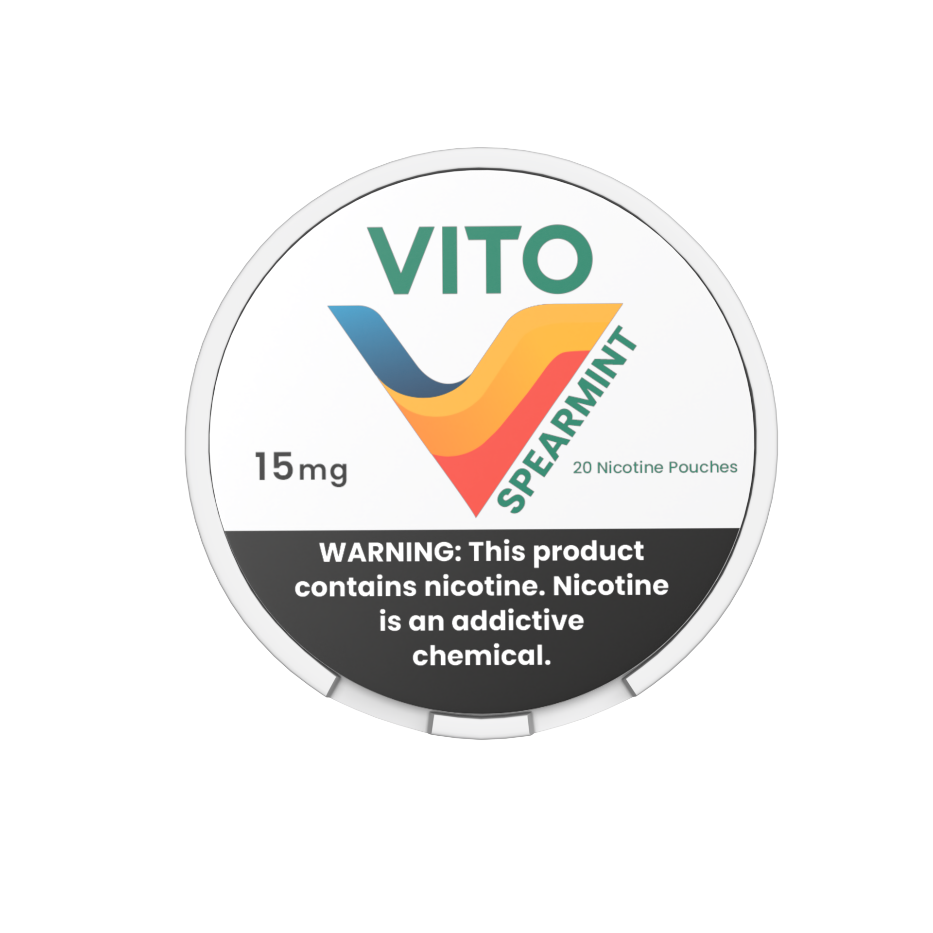 VITO Spearmint 15mg offers a cool, crisp spearmint flavor with a subtle, refreshing bite, ideal for beginners seeking a light nicotine experience with a classic minty twist. These slim, all-white pouches contain 15mg of high-quality tobacco-derived nicotine (TDN), crafted by TFI USA Labs Inc. for a clean, satisfying alternative. Each can holds 20 pouches and features a convenient hinged lid for easy disposal. Available in multipacks of 5, 10, 25, or 50 through USANico’s online store, with fast and reliable shipping.